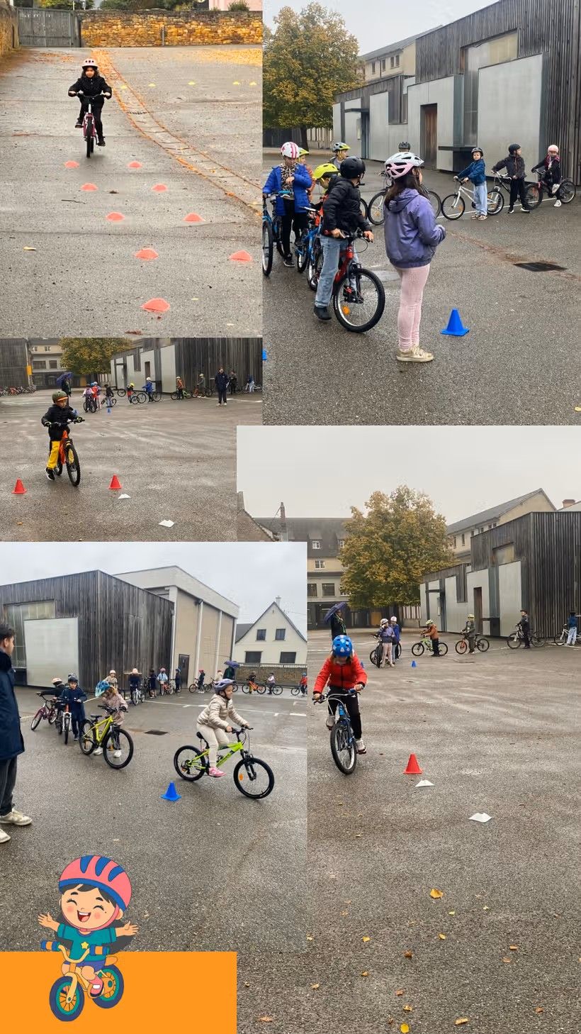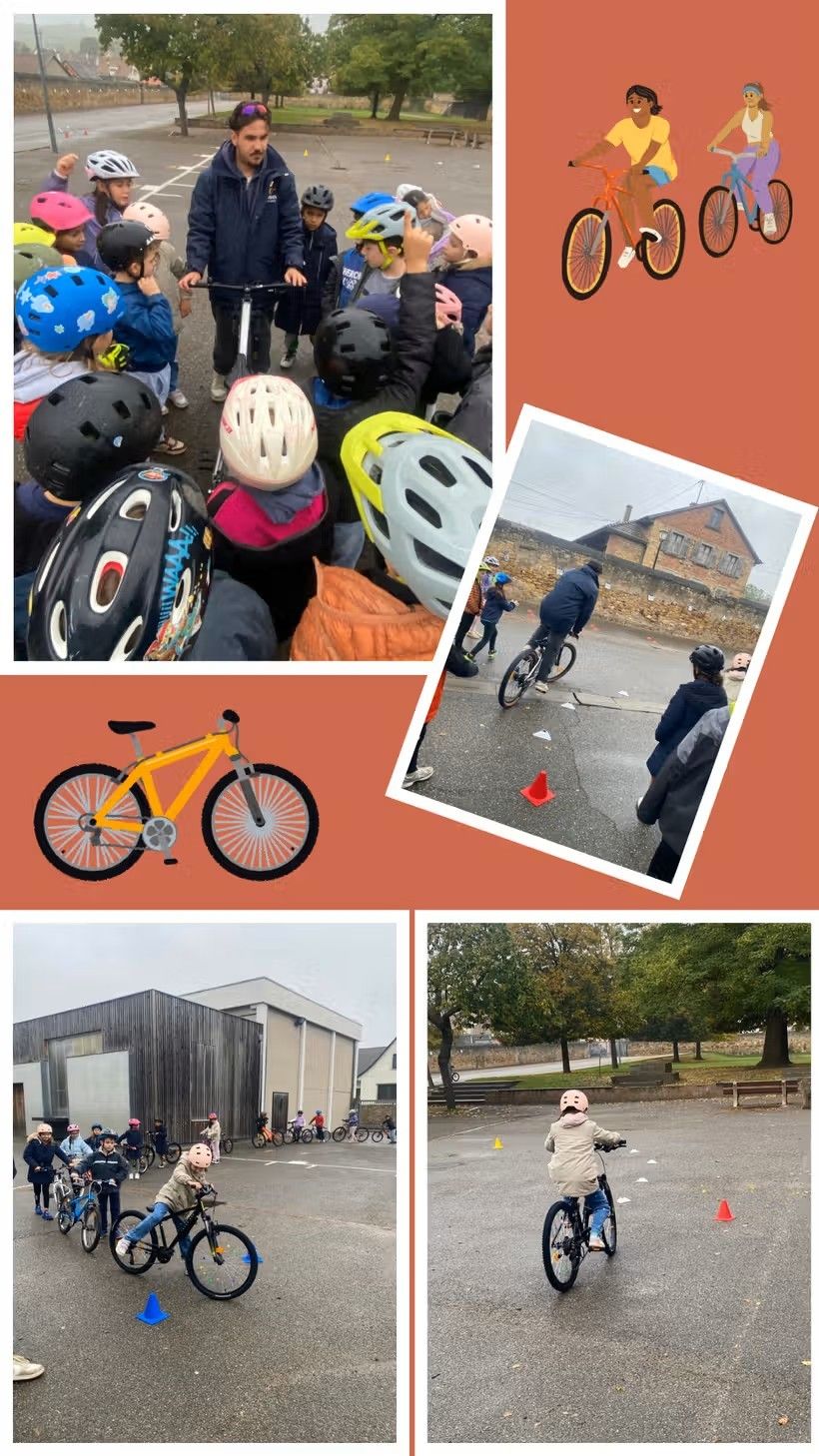 Du CE2 au CM2, nos élèves s’initient aux compétences élémentaires de « Sécurité Routière » grâce à la passation des blocs 1, puis 2 et 3 du « Savoir Rouler à Vélo ». De la théorie en classe, à l’entrainement dans la cour de l’Ecole, les enfants achèvent leurs apprentissages par des sorties à bicyclette dans la commune de Rouffach, encadrées par une animatrice agréée et soutenues par l’UGSEL !...