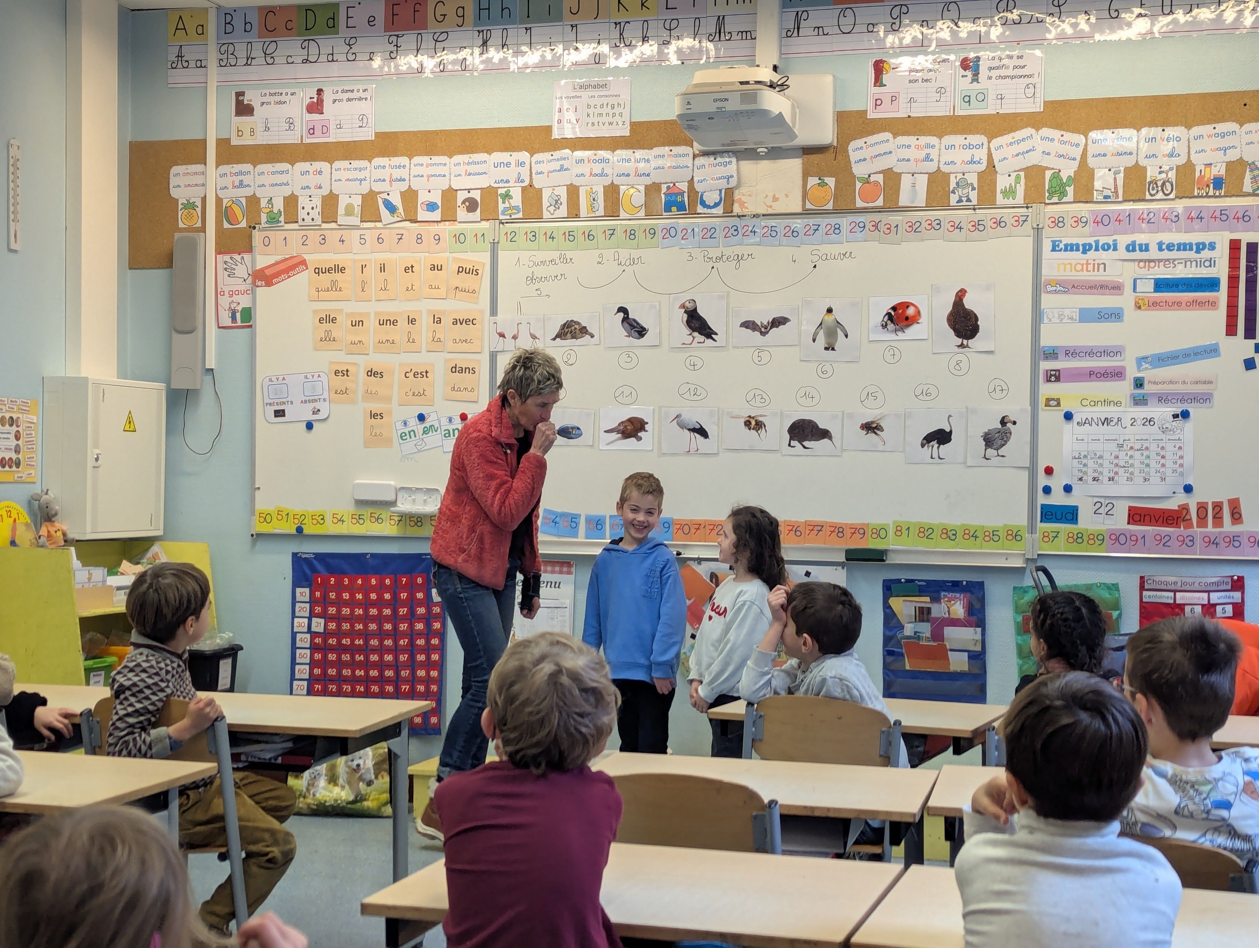 La "Ligue pour le Protection des Oiseaux" (LPO) intervient dans l'école auprès de nos classes de CP, CE1 et CE2. A travers des "jeux de becs" ou "jeux de plumes", les enfants deviennent de jeunes ornithologues et assimilent les caractéristiques des oiseaux.