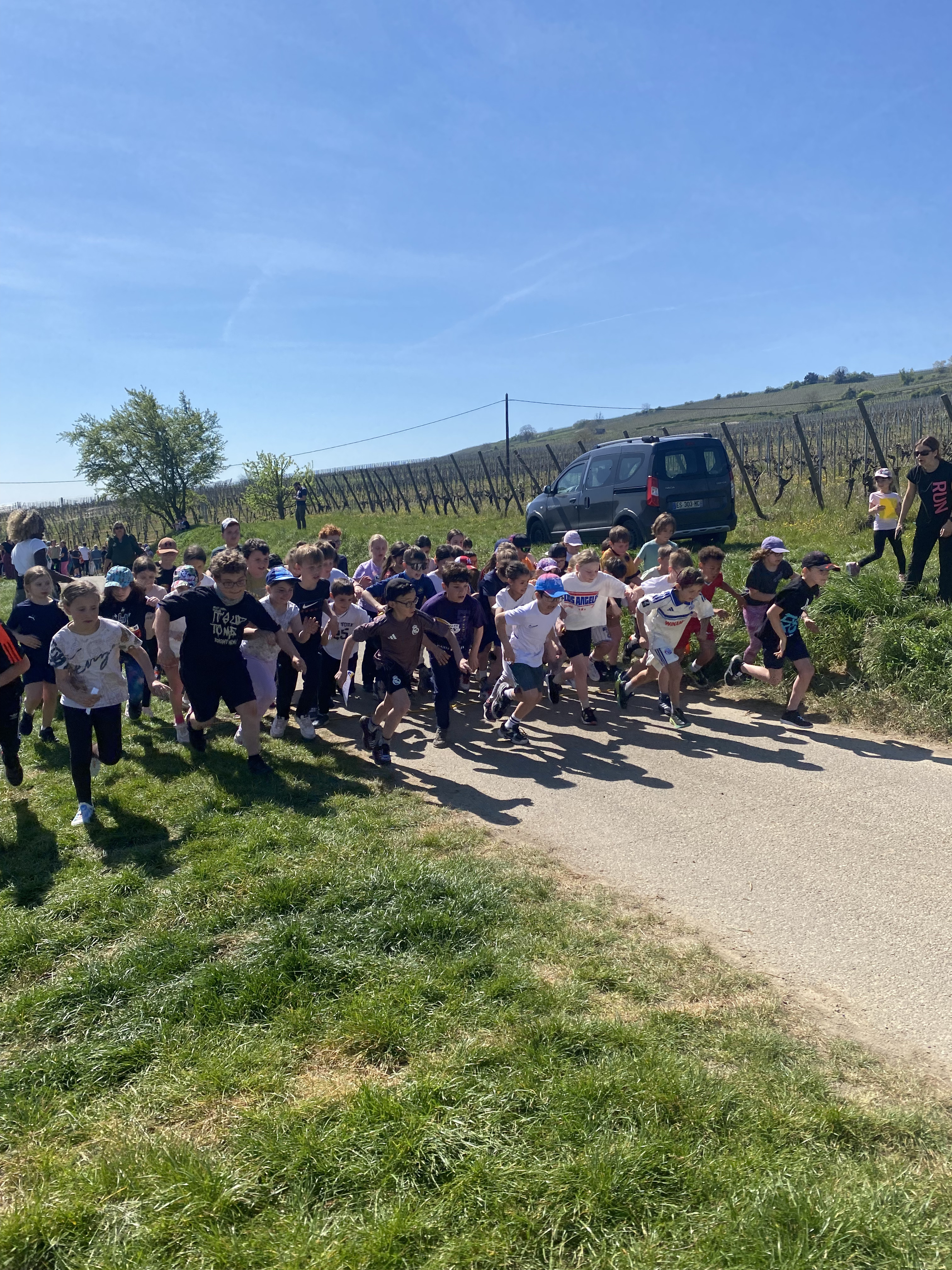 A la veille des vacances d'avril, le désormais traditionnel grand CROSS de St-Jo a tenu toutes ses promesses! Primaires et Collégiens ont arpenté les sentiers viticoles des hauteurs de l'Etablissement, pour une course placée sous le signe du plaisir et du dépassement de soi! Accompagné d'une météo idéale, chaque enfant, quel que soit son classement, a contribué à apporter des points à sa classe. La journée s'est achevée dans une ambiance de fête, avec un goûter offert par l'Etablissement et une remise des récompenses qui a associé petits et grands!...
