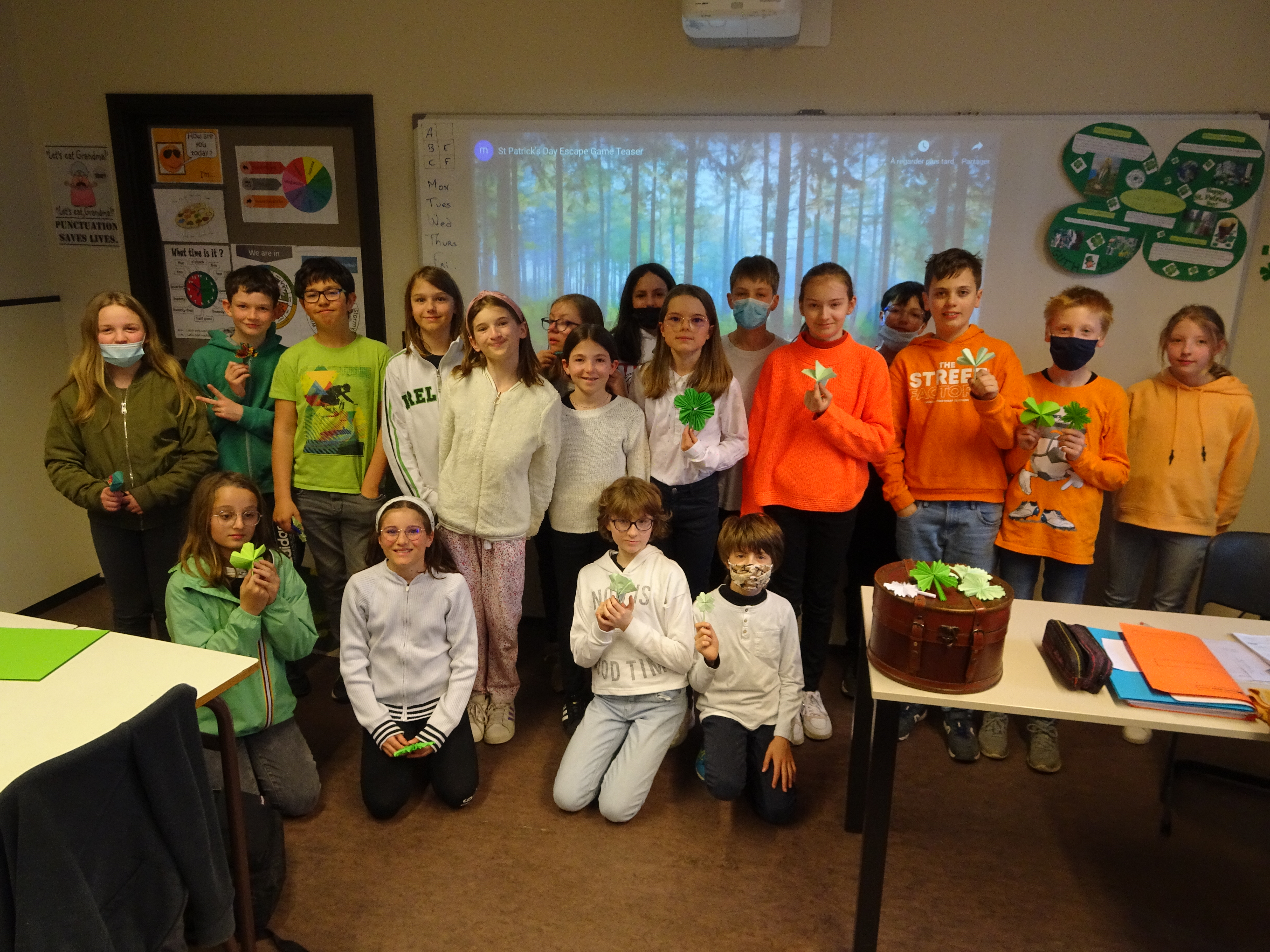 A l’occasion de la Saint Patrick, le 17 mars 2022, les élèves de 6ème et de 3ème du collège Saint Joseph ont fait honneur à l’Irlande : pour partir en quête du trésor des Leprechauns, ils arboraient fièrement les couleurs du drapeau irlandais et le trèfle de Saint Patrick.