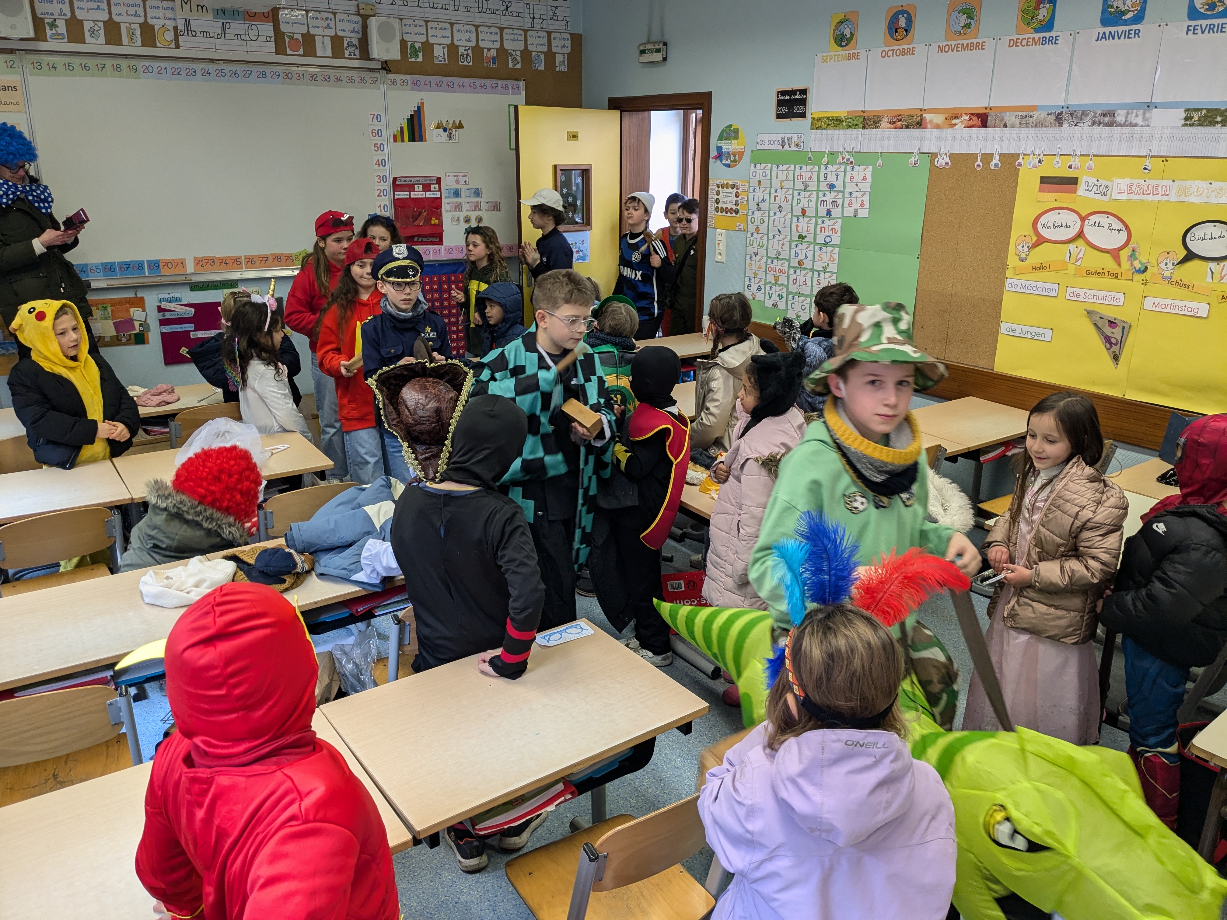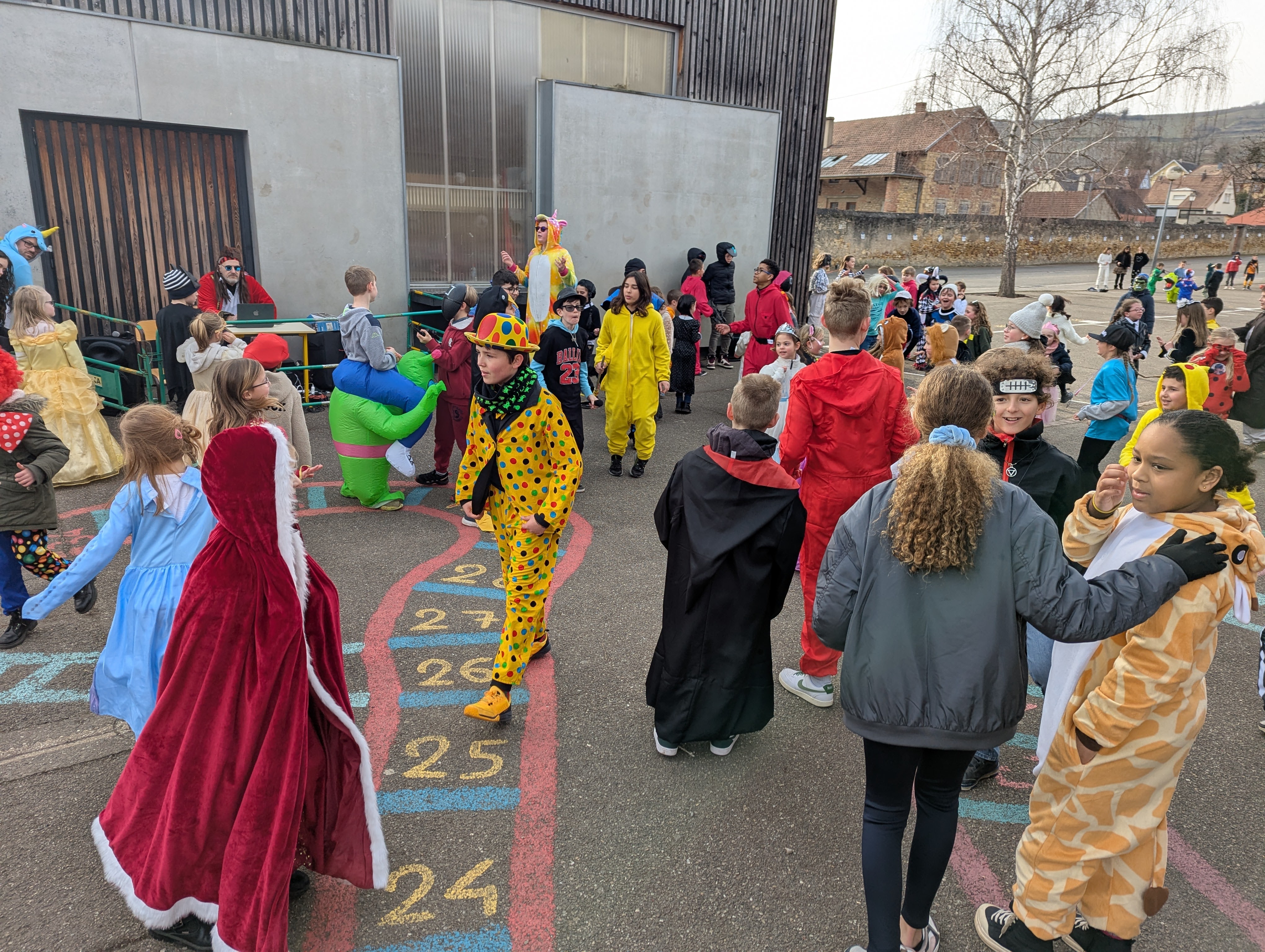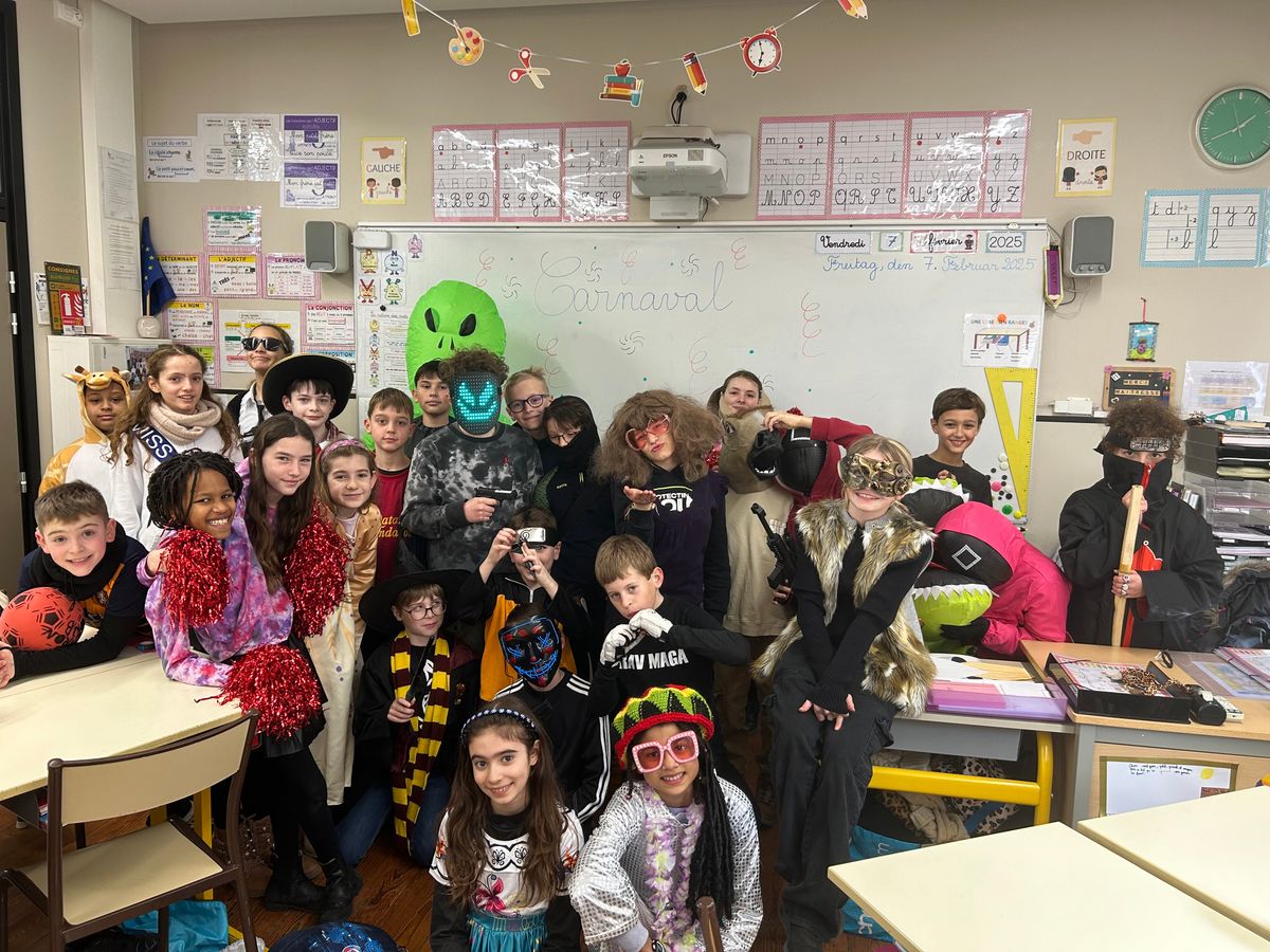C'est désormais une tradition, tout Saint-Jo se déguise le dernier jour avant les vacances d'hiver afin de s'offrir une journée spéciale, avec tout l'Etablissement !... Ainsi, une joyeuse cohorte d'enfants a déambulé dans les couloirs pour aller gentiment mais bruyamment saluer les "grands frères" du Collège, et taquiner les équipes administratives !... Par la suite et dans une ambiance de discothèque de plein air, nos élèves se sont déhanchés sur les rythmes de notre "dj maison", qui a exceptionnellement troqué règle, compas et équerre contre ses platines !... Enfin, un grand Merci à nos CM2 qui ont offert gourmandises et douceurs à tous les enfants de l'Ecole (et même de l'Etablissement) autour d'un banquet carnavalesque !... Bien que le calendrier ne soit pas tout à fait respecté, nous aimons achever cette période dans une atmosphère de joie, de bonne humeur et de convivialité, principes chers à Saint-Joseph...
