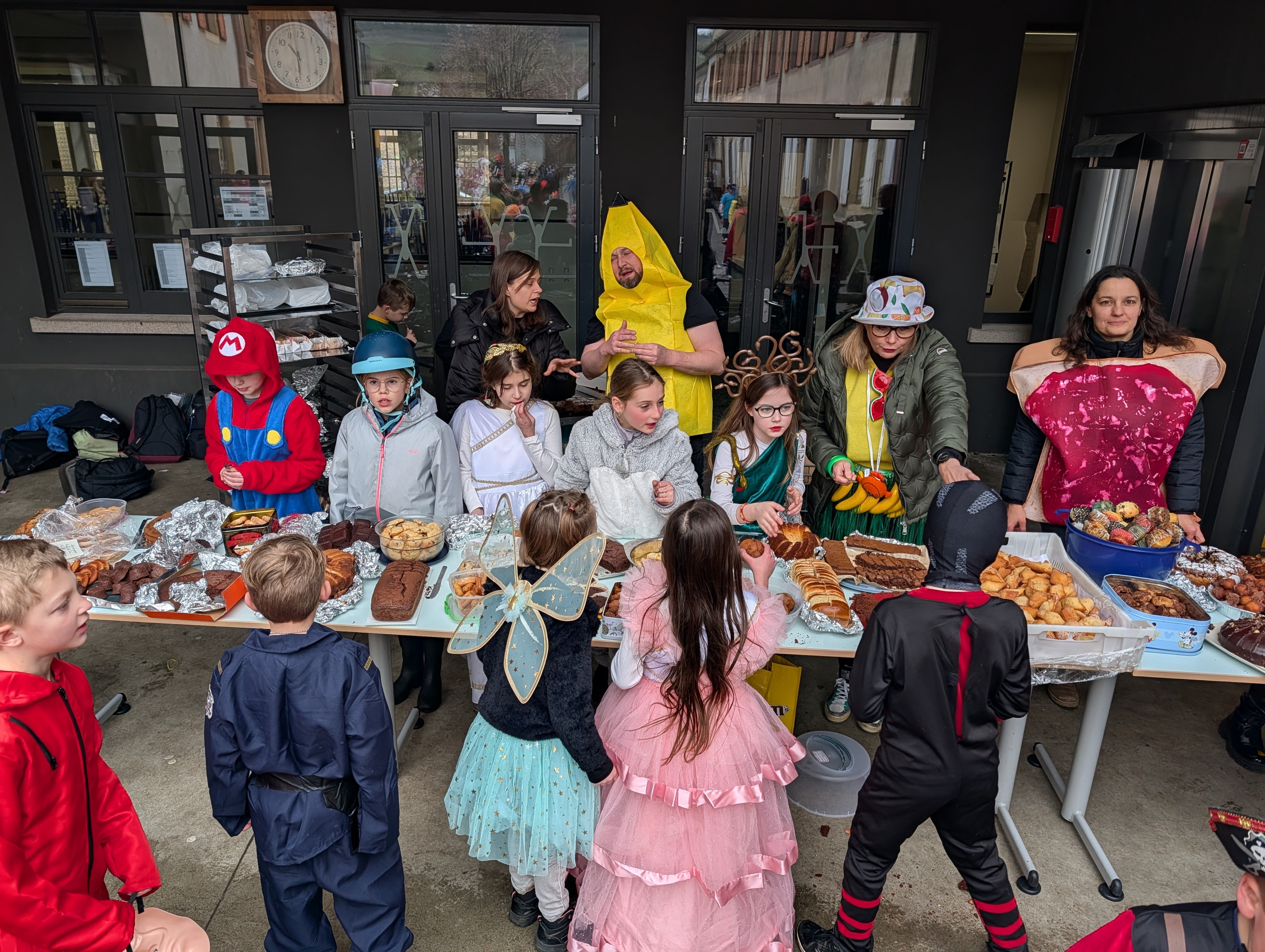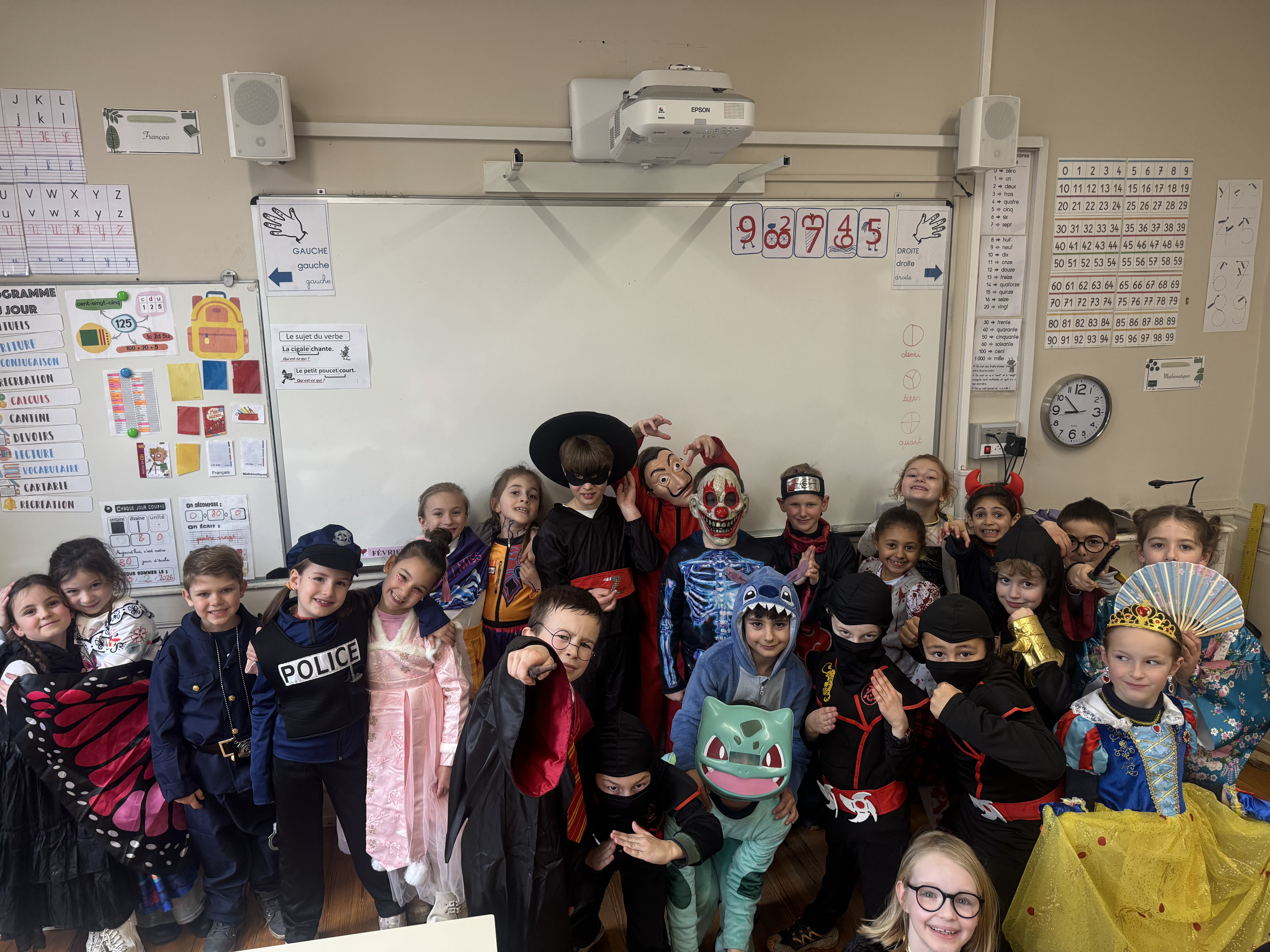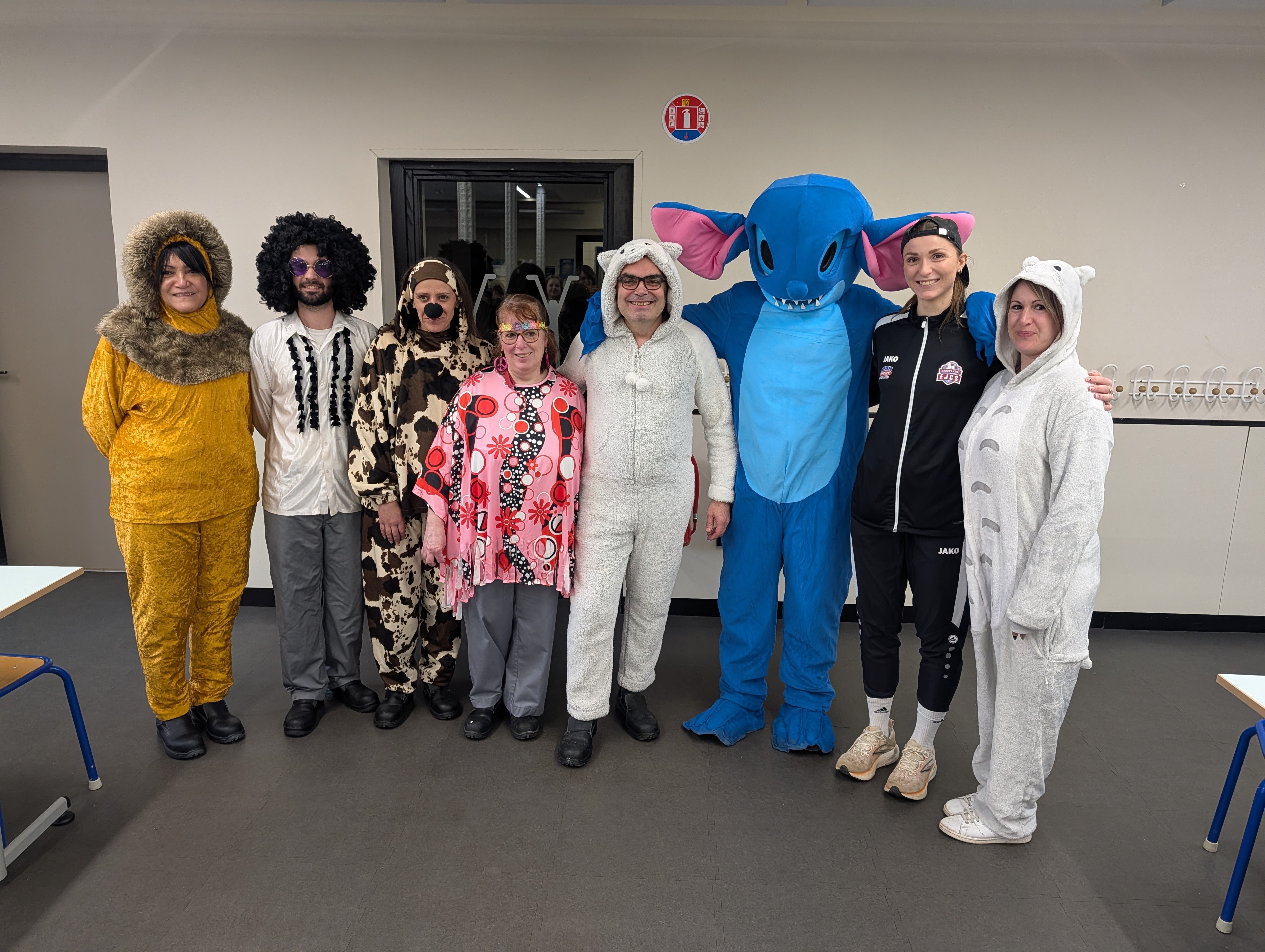 A l'aube des vacances de février, c'est désormais une tradition : Saint-Jo fête Carnaval ! Petits comme grands, tout l'Etablissement se déguise, et transforme ce dernier jour avant les vacances en une journée spéciale ! Nous aimons achever cette période avec le sourire, et dans une atmosphère de joie, de bonne humeur et de convivialité, principes chers à Saint-Joseph... Malgré une météo plus maussade que les années précédentes, une joyeuse cohorte d'enfants a défilé dans les couloirs pour aller gentiment mais bruyamment saluer les "grand-frères" du Collège, et taquiner les équipes administratives !... Par la suite, et dans une ambiance de discothèque de plein air, nos élèves se sont déhanchés sur les rythmes de notre "dj maison", qui a exceptionnellement troqué règle, compas et équerre contre ses platines !... Enfin, un grand Merci à nos CM2 qui ont offert gourmandises et douceurs à tous les enfants de l'Ecole (et même de l'Etablissement) autour d'un banquet carnavalesque !...