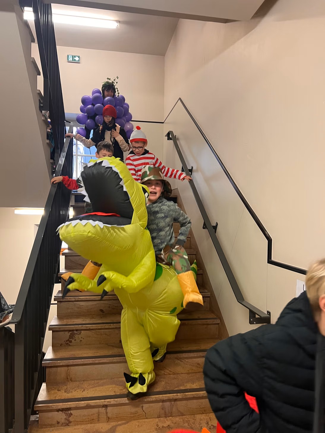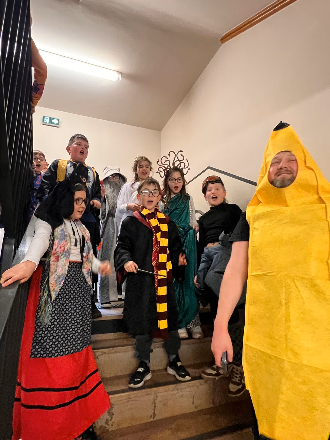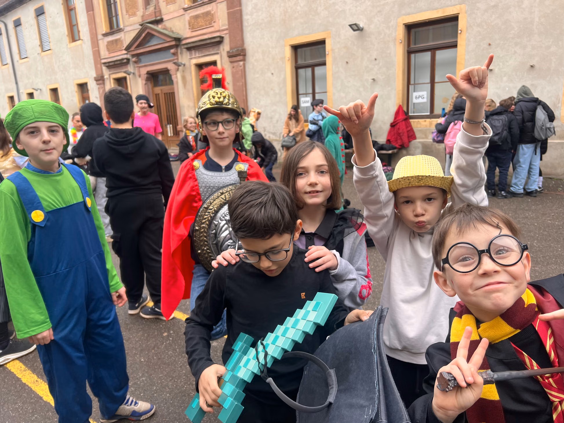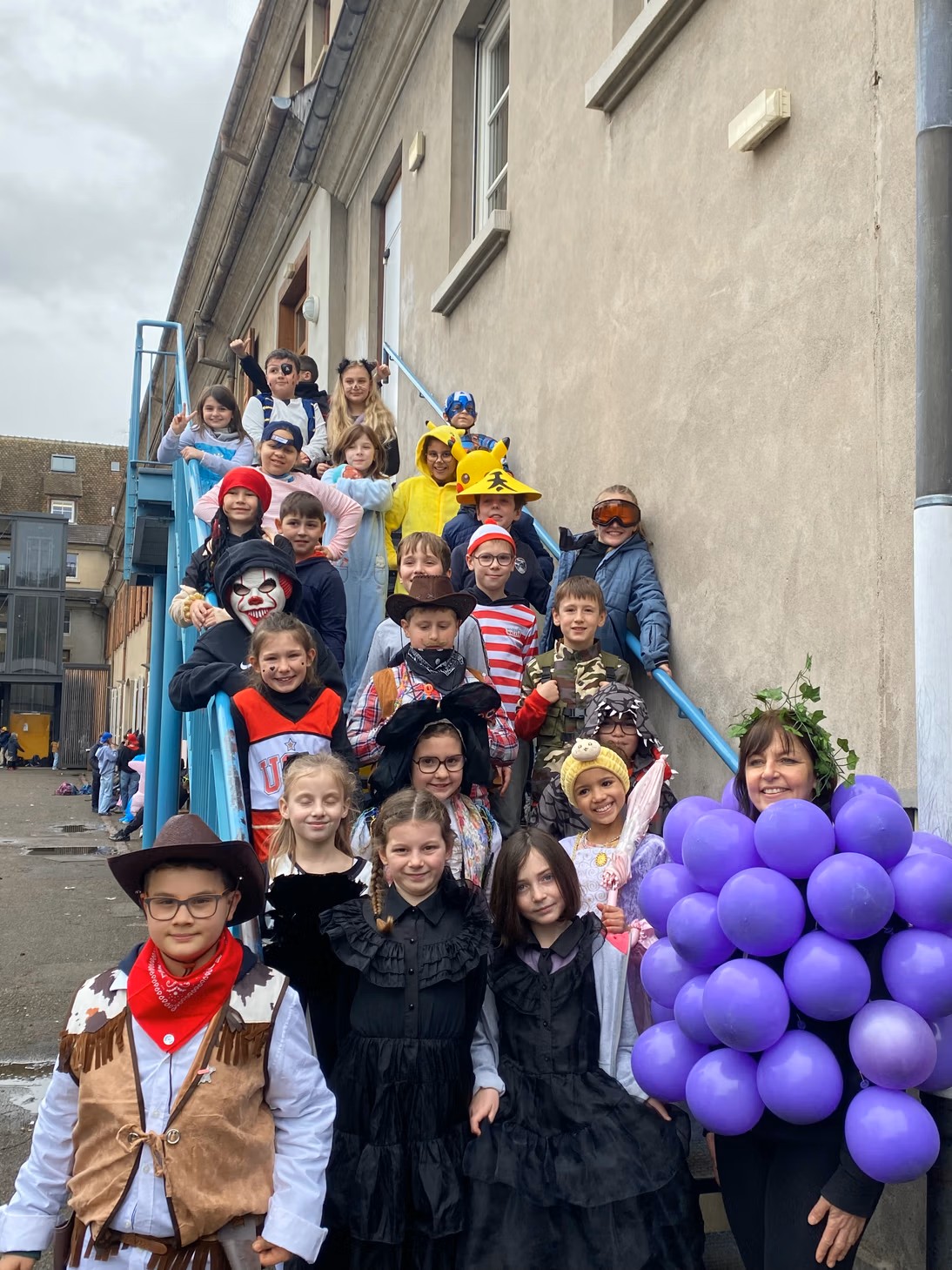 A l'aube des vacances de février, c'est désormais une tradition : Saint-Jo fête Carnaval ! Petits comme grands, tout l'Etablissement se déguise, et transforme ce dernier jour avant les vacances en une journée spéciale ! Nous aimons achever cette période avec le sourire, et dans une atmosphère de joie, de bonne humeur et de convivialité, principes chers à Saint-Joseph... Malgré une météo plus maussade que les années précédentes, une joyeuse cohorte d'enfants a défilé dans les couloirs pour aller gentiment mais bruyamment saluer les "grand-frères" du Collège, et taquiner les équipes administratives !... Par la suite, et dans une ambiance de discothèque de plein air, nos élèves se sont déhanchés sur les rythmes de notre "dj maison", qui a exceptionnellement troqué règle, compas et équerre contre ses platines !... Enfin, un grand Merci à nos CM2 qui ont offert gourmandises et douceurs à tous les enfants de l'Ecole (et même de l'Etablissement) autour d'un banquet carnavalesque !...