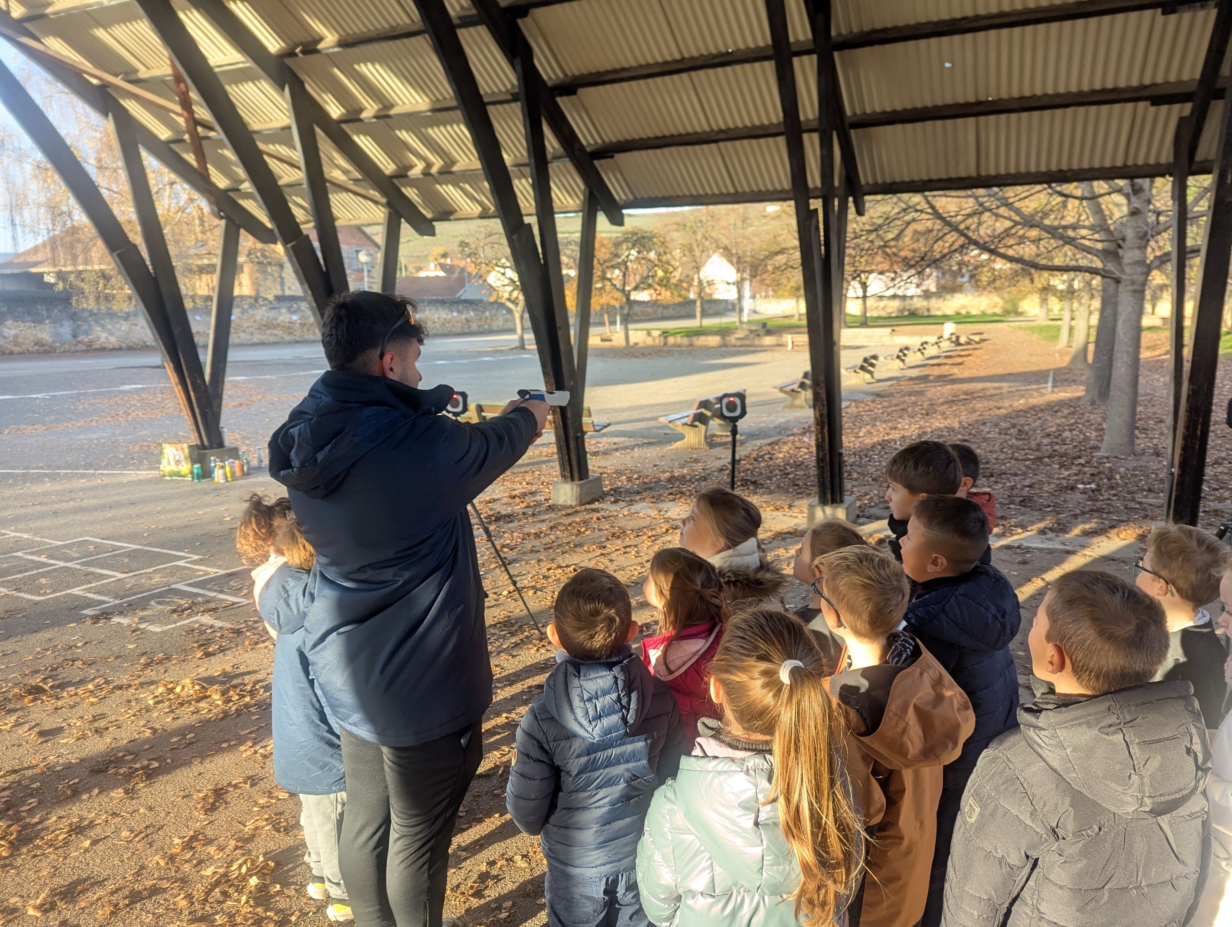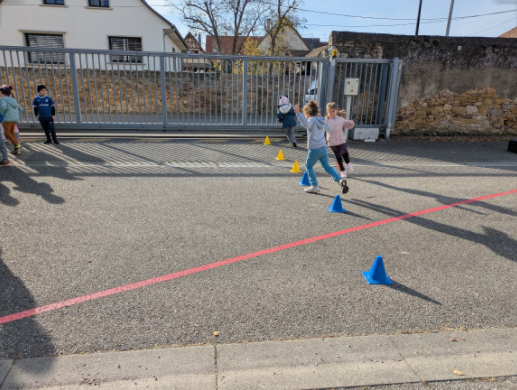 Avec Bastian et l’UGSEL, nos élèves se sont essayés au Biathlon dans la cour de l’Ecole ! S’ils n’ont évidemment pas chaussé les skis, ils ont pu alterner course et tir avec un pointeur laser !... Les enfants découvrent un nouveau sport, méconnu pour beaucoup ; ils ont dû allier vitesse et endurance, puis gérer la montée de leur rythme cardiaque pour associer calme et précision.