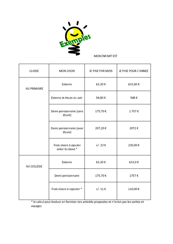 Télécharger le tarif détaillé
